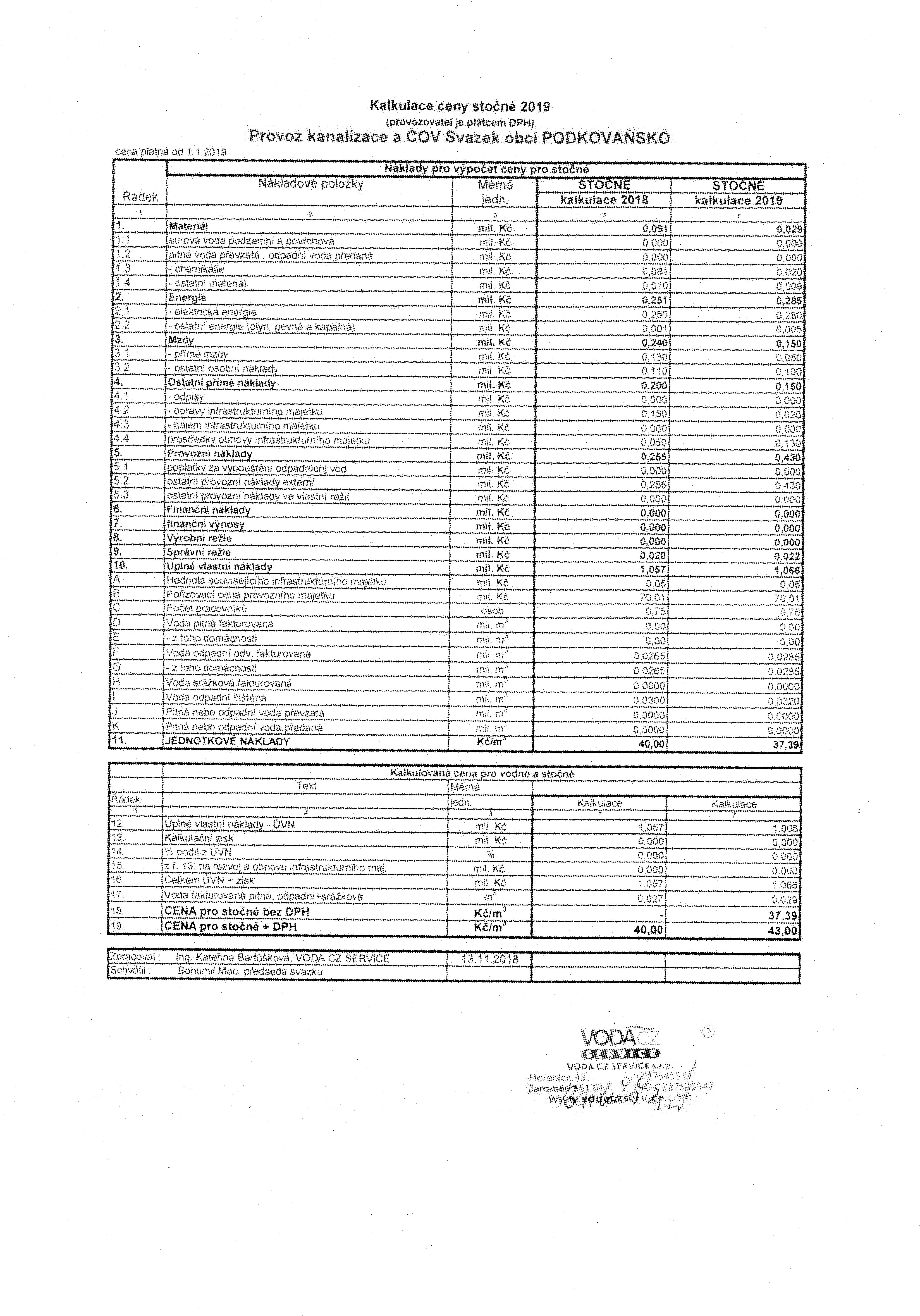 Klikněte pro více informací...  Download... Kalkulace ceny stočného 2019